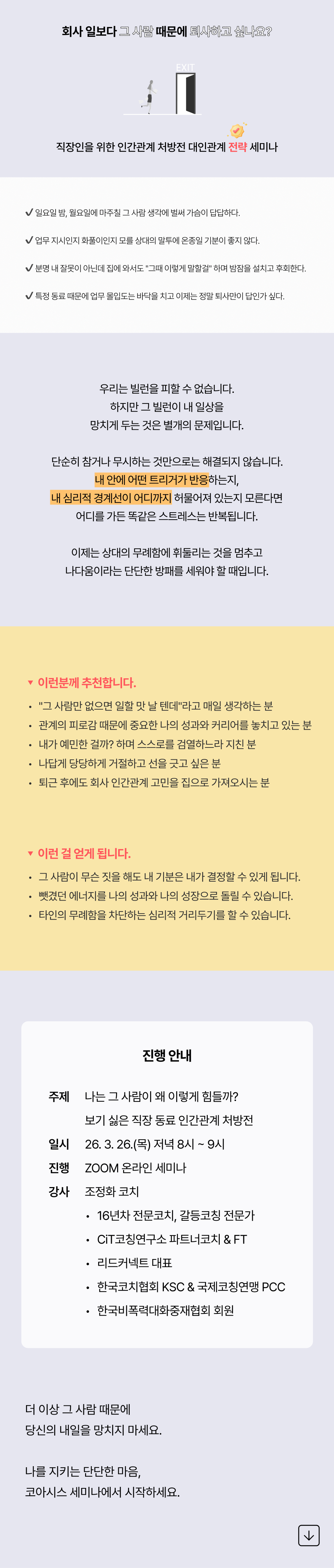 ✅ 관계의 피로감 때문에 중요한 나의 성과와 커리어를 놓치고 있는 분